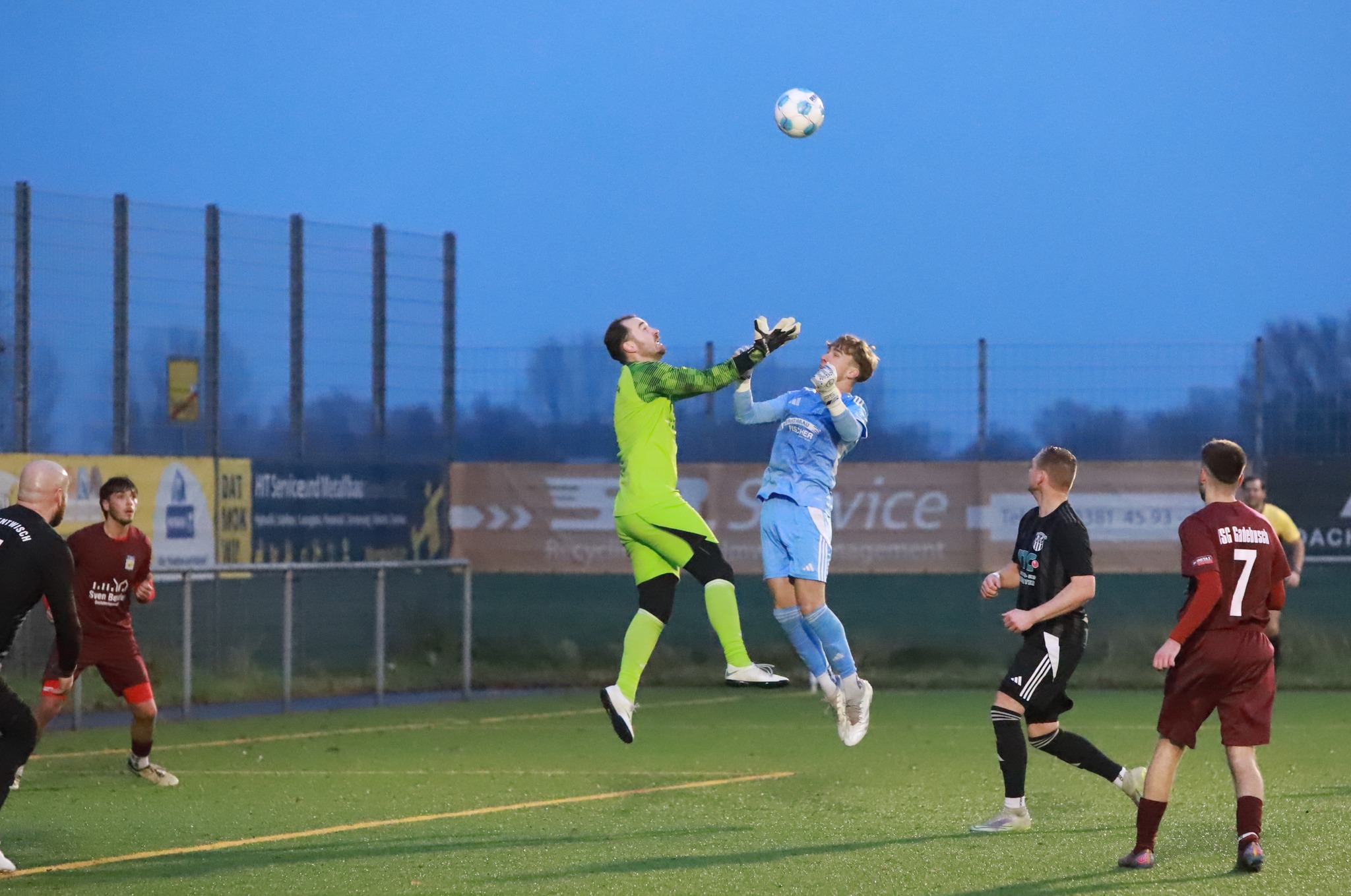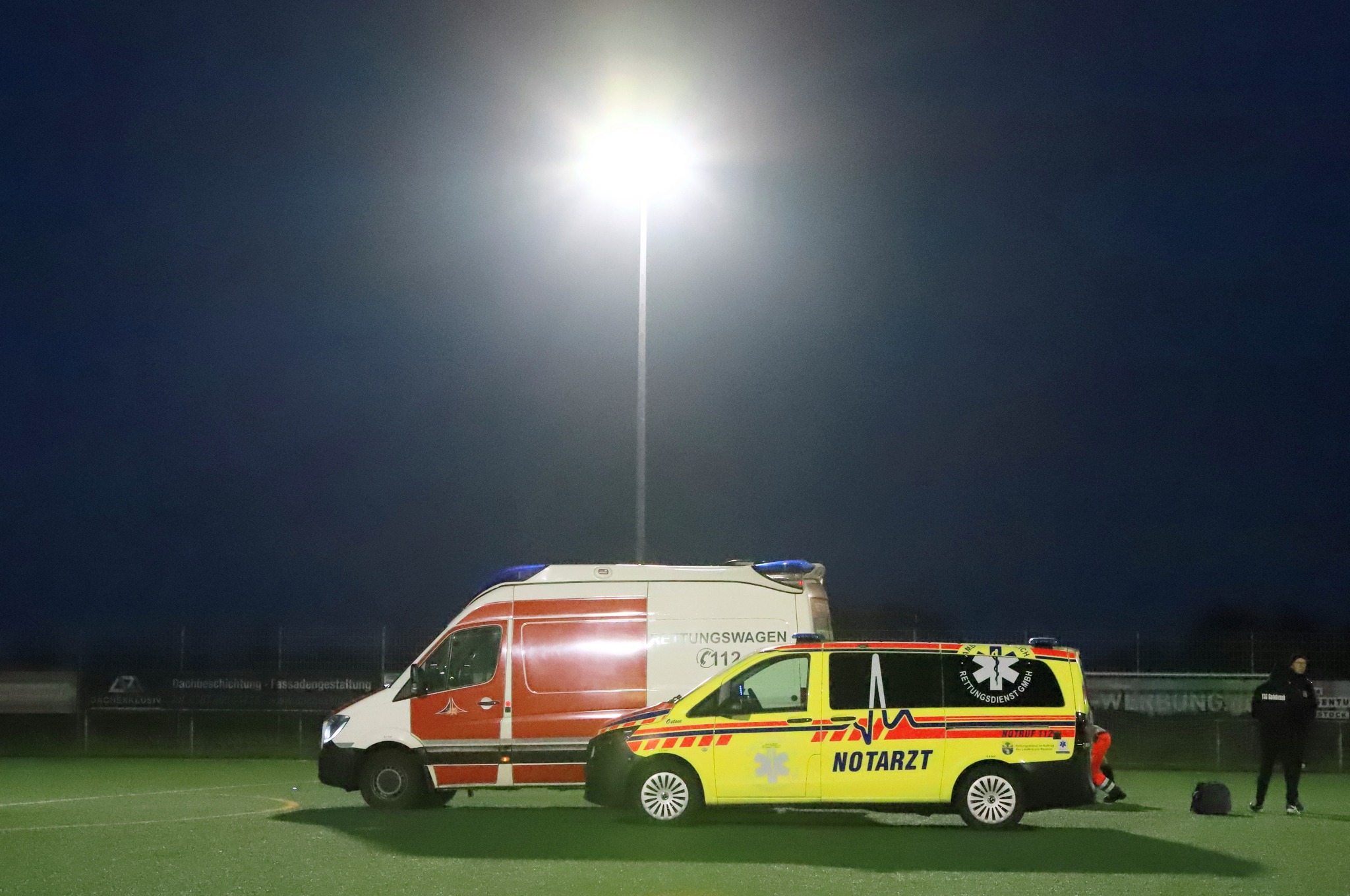 Ärgerlich: Bei einer Ecke in der Nachspielzeit hat sich der aufgerückte Gäste-Torwart nach einem Zusammenprall verletzt. Er wurde durch die hervorragende Zusammenarbeit der medizinischen Abteilungen beider Vereine zunächst für längere Zeit behandelt und schließlich mit dem Rettungswagen abtransportiert. Gute Besserung!
