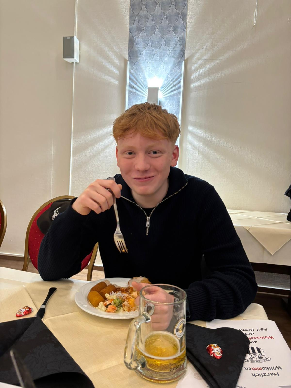 Schnitzel, Hähnchenkeule, Fisch: Beim reichhaltigen Büfett war für jeden etwas dabei. Mit vollem Bauch sorgte im Anschluss die Gesangseinlage der Sommerneuzugänge für muntere Stimmung. Einige von ihnen haben echtes Gesangstalent - andere sollten es lieber lassen ...
