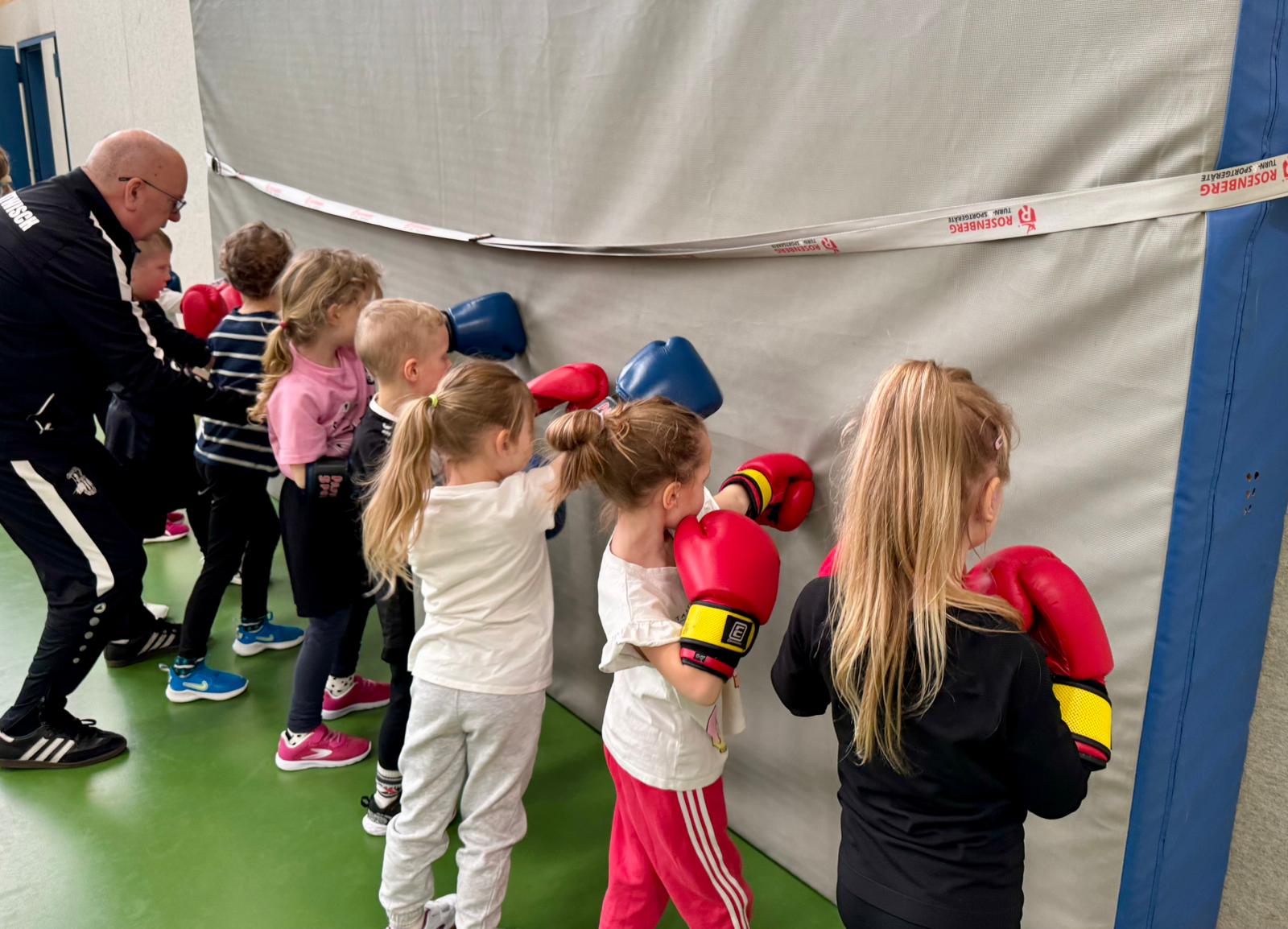 Im Rahmen unserer Kindersportstunde konnten unsere älteren Kinder in der vergangenen Woche eine ganz besondere Erfahrung sammeln: Sie bekamen einen spannenden Einblick in die Welt des Boxens – wie es sich anfühlt und was alles dazugehört. Mit viel Geduld, großer Begeisterung und einem feinen Gespür für die Kinder vermittelte unser Boxtrainer Rüdiger Hohenberg auf spielerische Weise die Grundlagen dieses Sports.