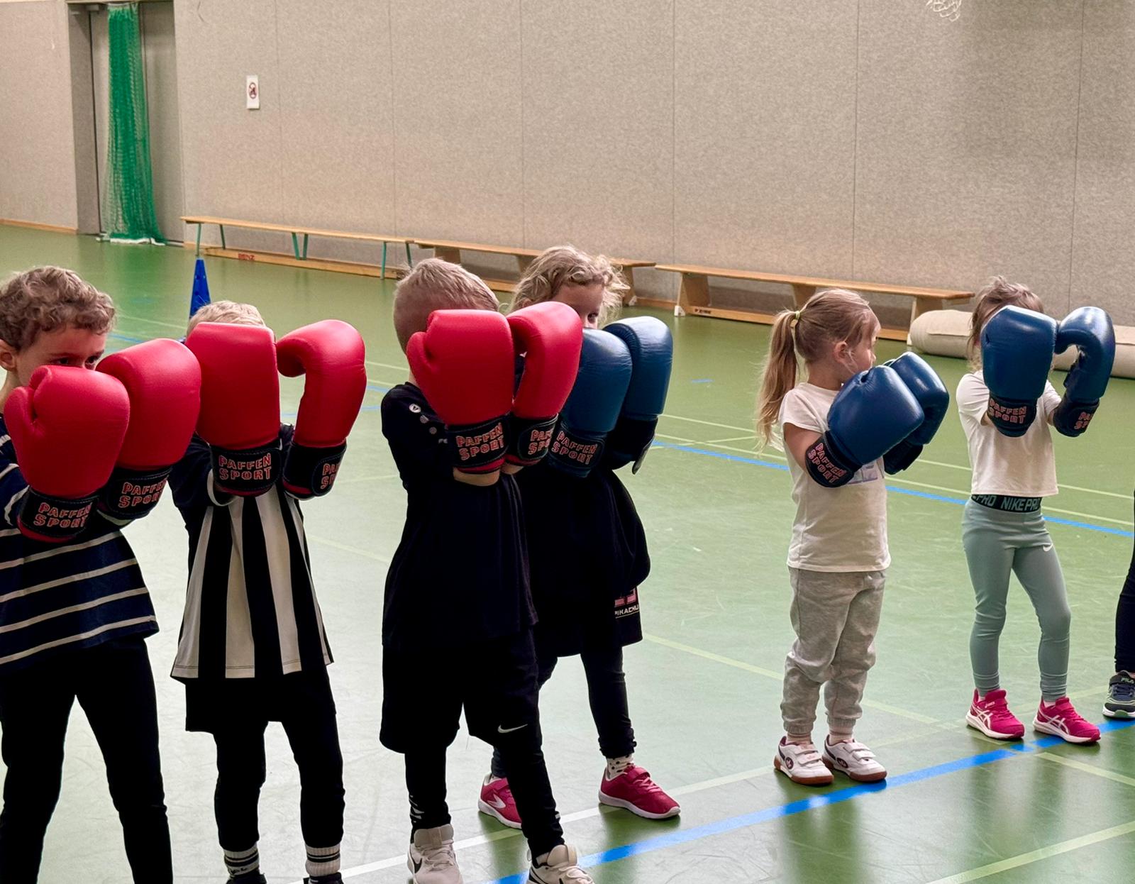 Die Freude war riesig, es wurde viel gelacht und gegenseitig angefeuert. Auch wenn die Boxhandschuhe für die kleinen Hände noch etwas groß waren wurde es ein Erlebnis, das ihnen sicher lange in Erinnerung bleibt.