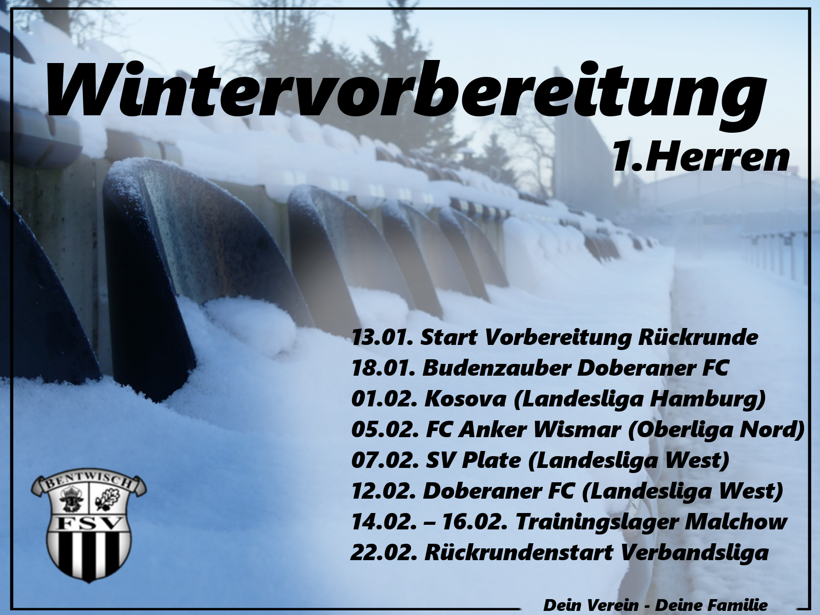 Neben vier Testspiel steht auch ein Kurz-Trainingslager im Sporthotel Malchow an. Ein erster Test gibt es bereits an diesem Wochenende. Am Samstag sind unsere 1.Herren beim Budenzauber des Doberaner FC zu Gast. Start der Rückrunde ist dann am 22. Februar.