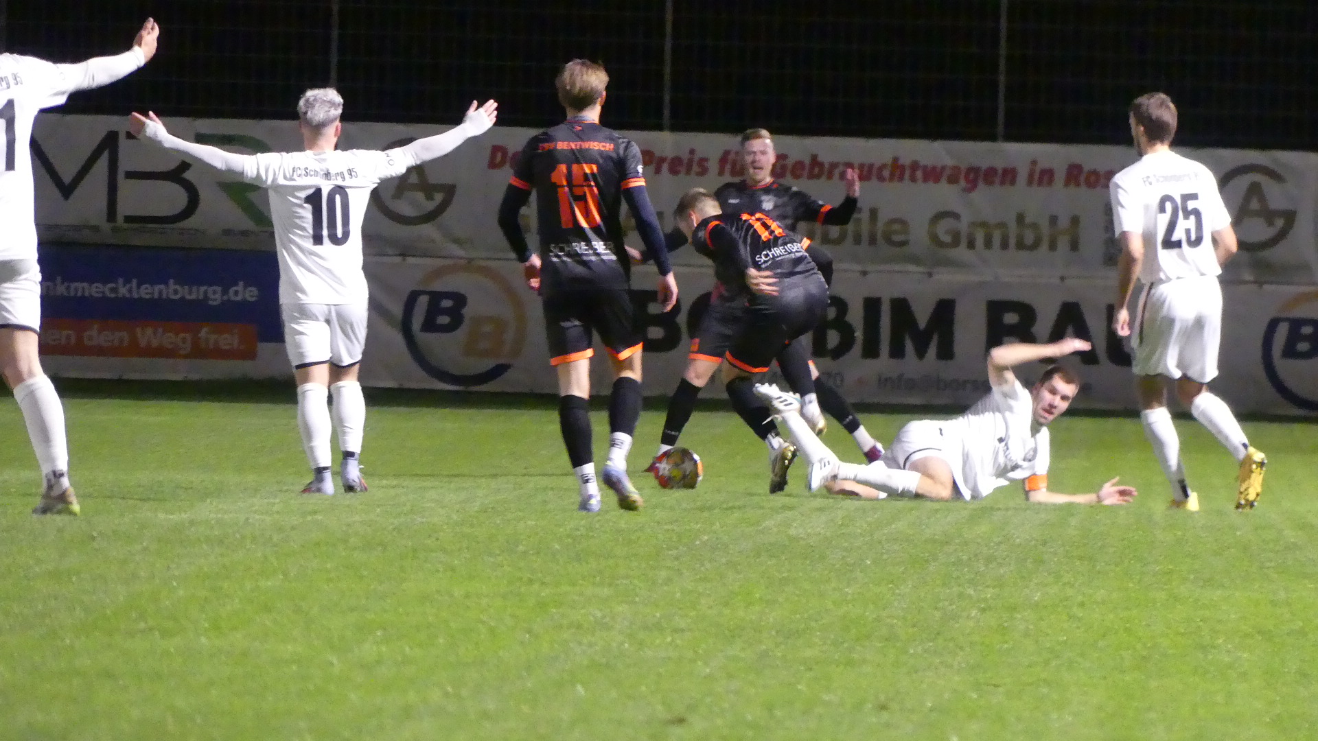 Der Auftakt am Freitagabend war vielversprechend: Tim Hermann erzielte in der 15. Minute nach einer Flanke aus dem Mittelfeld per Fallrückzieher die Führung. Nach einer gegnerischen Ecke geriet die Zuordnung etwas ins Wanken, und Schönberg kam zurück ins Spiel (23.). So ging ausgeglichenen in die Pause.
