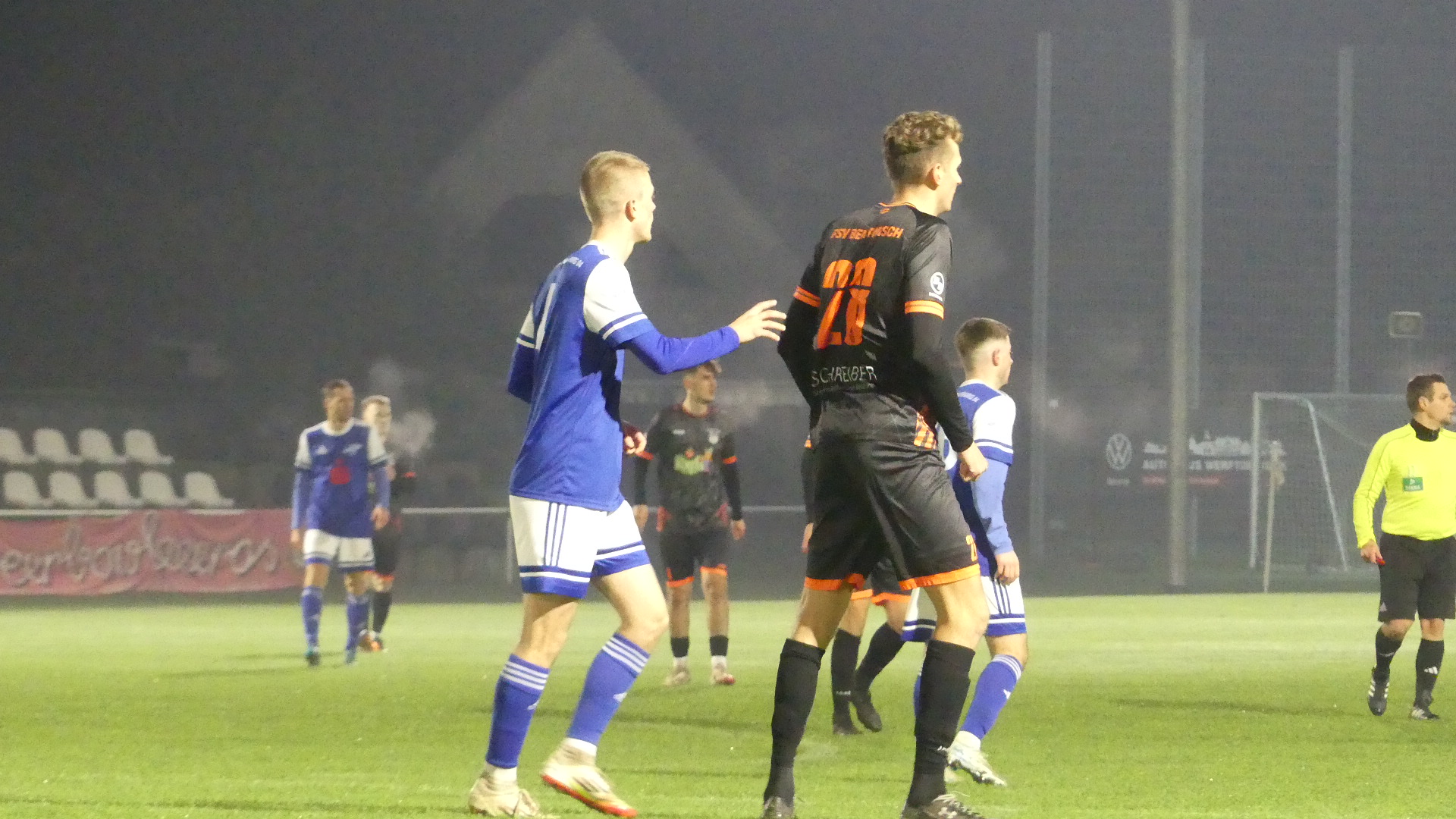 Im zweiten Durchgang blieben die FSV-Kicker spielbestimmend. Erneut Brauer erhöhte mit seinem zweiten Treffer das Ergebnis auf 2:0. Dann der Schock. In der 73. Minute bewegte der aufkommende Nebel den Schiedsrichter zum Spielabbruch. Neben den Zuschauern gab es vor Allem Unverständnis bei den beiden Mannschaften über das plötzlich Ende.