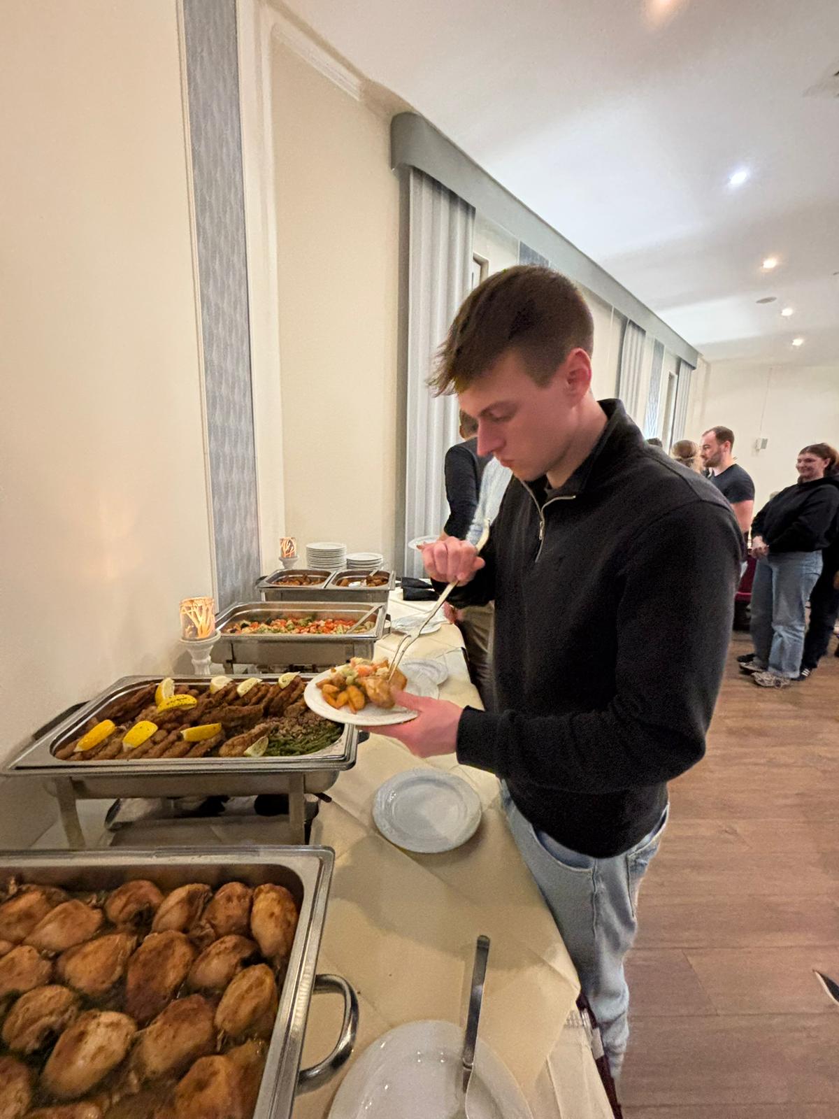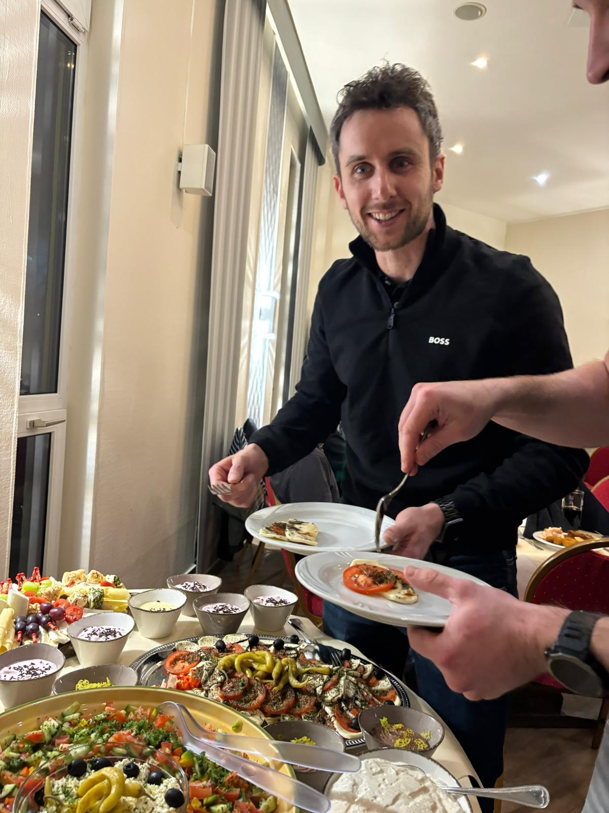 Schnitzel, Hähnchenkeule, Fisch: Beim reichhaltigen Büfett war für jeden etwas dabei. Mit vollem Bauch sorgte im Anschluss die Gesangseinlage der Sommerneuzugänge für muntere Stimmung. Einige von ihnen haben echtes Gesangstalent - andere sollten es lieber lassen ...