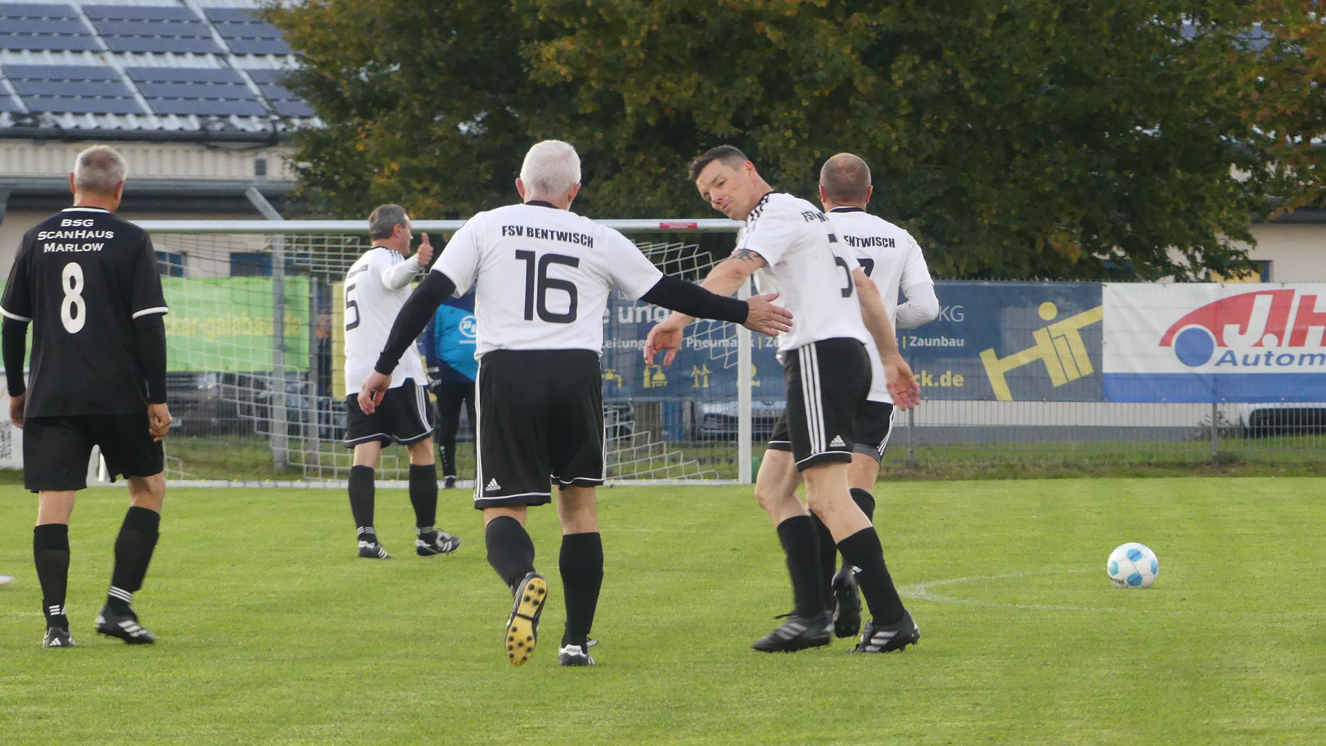 Dabei lief der Spielbeginn etwas holperig. Bereits nach knapp vier Minuten gerieten die FSV-Kicker in Rückstand. Damit nicht genug. In der 21. Minute erhöhten die Marlower sogar auf 2:0. In der Folge kamen die Bentwischer besser ins Spiel. Andreas Müller (26.) und Mike Sperlich (34.) sorgten mit ihren Toren zum Ausgleich. So ging es in die Pause.