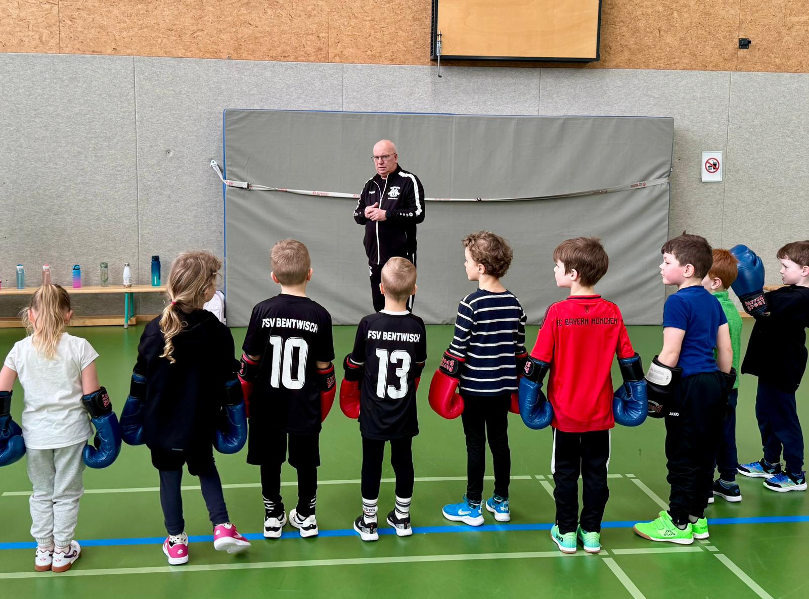 Die Freude war riesig, es wurde viel gelacht und gegenseitig angefeuert. Auch wenn die Boxhandschuhe für die kleinen Hände noch etwas groß waren wurde es ein Erlebnis, das ihnen sicher lange in Erinnerung bleibt.